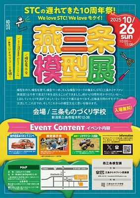 主催はSTC(三条タミヤファン倶楽部)、クラブ結成10周年ということで、1年遅れながらも展示会を開きたくなったそうです。