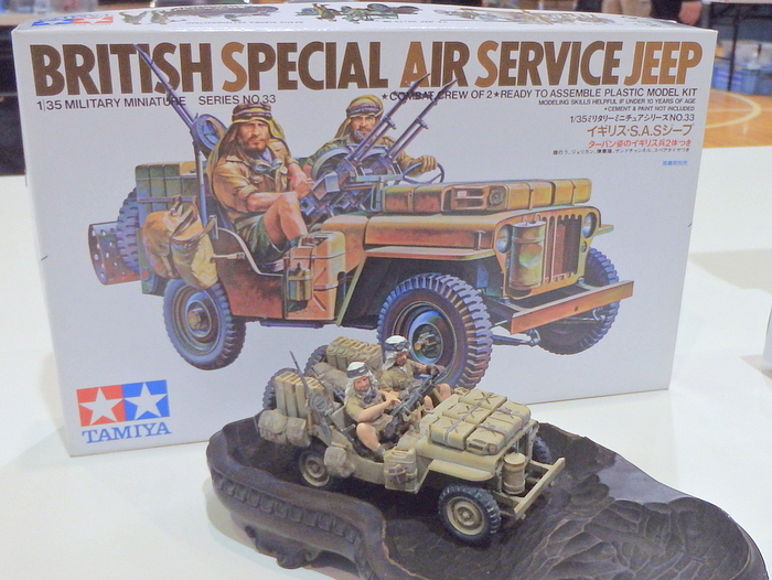 7月に逝去された田宮俊作会長を偲び、田宮のキット完成品を箱と一緒に並べる企画です。 |