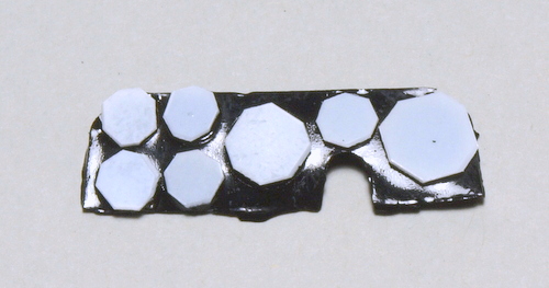 黒を塗る。”乾いたら塗り”を3度ほど繰り返し、厚く仕上げる。6. 0.3ミリのプラ板を瞬間接着剤で貼る。 |