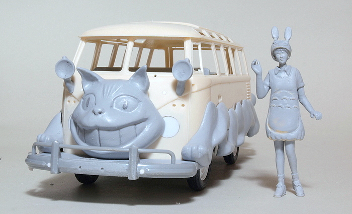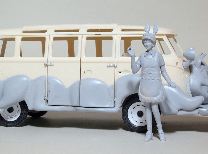 ハセガワのワーゲンバスです。そのまま作ってもよし、改造ベースにしても良しと使い勝手の良いキットです。なぜ今回これを作るかの理由を以下に。 ////////////// 私のサイトの主なターゲットと彼らに対する”想い”はこうなります。 @ 日常的に模型を作っている人 A 前は作っていたが長く中断していて、久しぶりに作ろうとしている人(出戻り) B 模型の作り方を勉強したい中高生 特に意識しているのはAとBです。前から何度も書いていますが、プラモに限らず自分で手を動かして何かを作る行為は人間にとってとても重要で、そういうこと を楽しむ人が増えれば国も豊かになると信じているからです。 ただし届いていないターゲットもあります。 C 模型工作にそれほどの興味を持っておらず、今までもやっていなかった層 は模型サイトなぞ見ないでしょうからどうにもならない。ただ展示会などに行きますと、そういう人たちもふらっと見に来ています。そして彼らが足を止めるのは大抵キャラクター作品なんですね。 そうなるとその人たちを沼に引きずり込むためにやることが見えてきます。