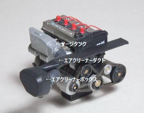 またエンジンルームに納めてみると、この長いエアクリーナーダクトがエンジンの美味しいところを隠してしまう。 |