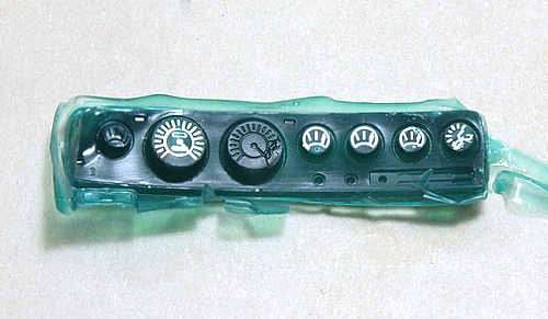特に向かって右の時計メーターはどうにもならないので、他のキットからそれらしいものを写しました。 |